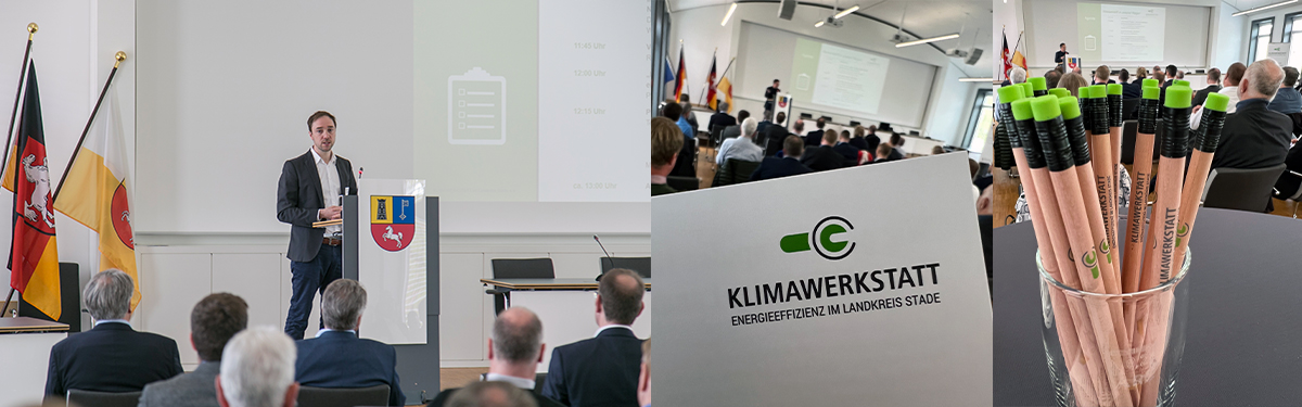 Diese und viele weitere Fragen wurden bei der von der Klimawerkstatt im Landkreis Stade initiierten Veranstaltung „Wasserstoff in unserer Region“ am 3. Mai 2022 im Kreishaus von geladenen Experten beantwortet. Rund 60 Interessierte aus Unternehmen und Politik lauschten den Vorträgen von Herrn Dr. Hamelmann, Projektkoordinator Wasserstoff beim TZEW, Herrn Dieckmann, Projektplaner des Projektes „H24 Stade“ sowie Herrn Schneider, Wasserstoffbotschafter der EWE. Sie machten das Thema Wasserstoff greifbar, erklärten für alle anschaulich und verständlich und stellten auch konkrete Projekte aus der Region vor.